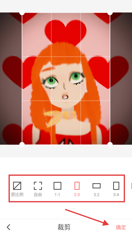 3、点击【裁剪】,选择合适的裁剪比例,调整图片裁剪区域。
