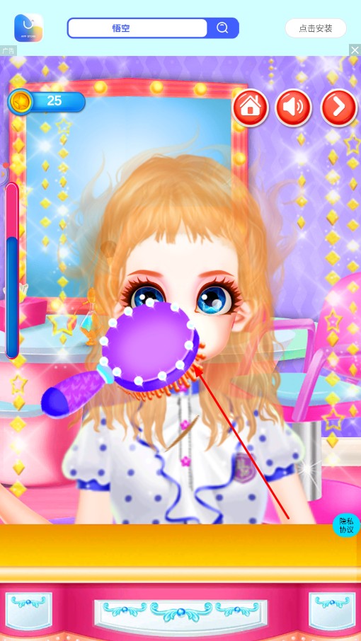 4、接着用梳子等工具梳理角色的头发,打造出整齐美观的发型,完成美发步骤。