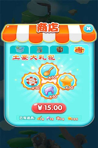 游戏中只需将三个或三个以上相同颜色的果冻相连即可消除,灵活运用功能强大的各种道具更可以轻松完成每一个关卡。