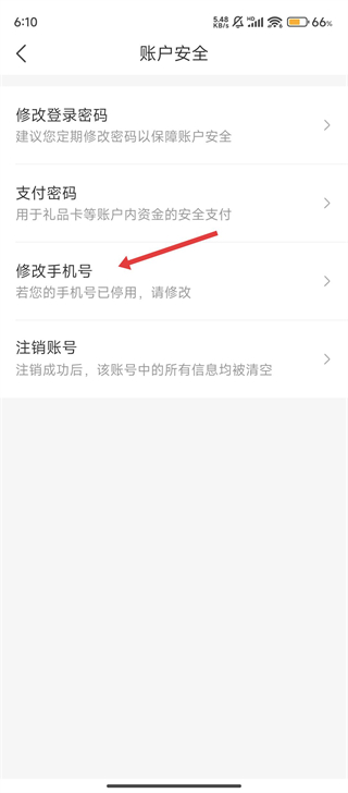 3、在账户安全页面,点击【修改手机号】选项,就可以进入手机号修改流程啦。