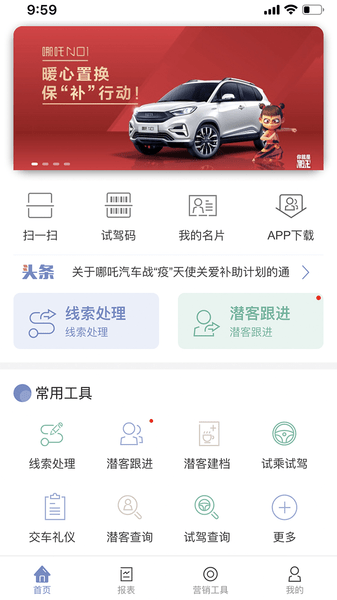 哪吒慧商宝app是为汽车行业管理拓客的优质服务平台,拥有自己的汽车工厂,可以更好的和潜在客户进行沟通,跟进潜在客户,提升销售员工的开单几率,还有试驾试乘等一系列功能,十分的实用哦。