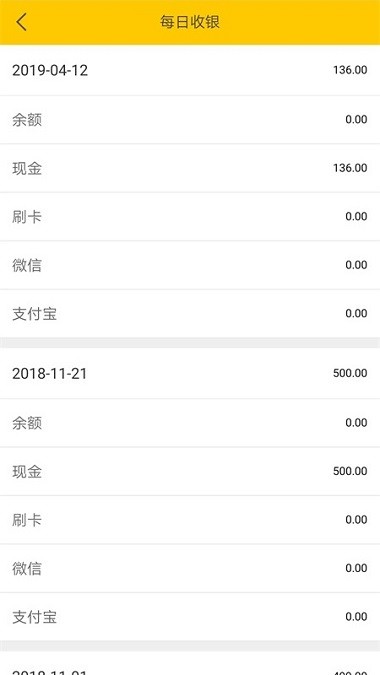 每日收银统计,刷卡、现金、微信、支付宝等支付方式的收款数据同步统计;