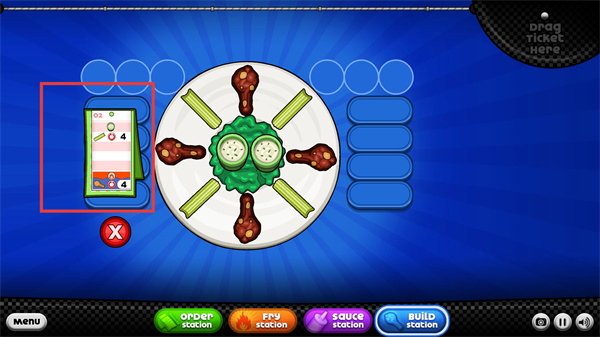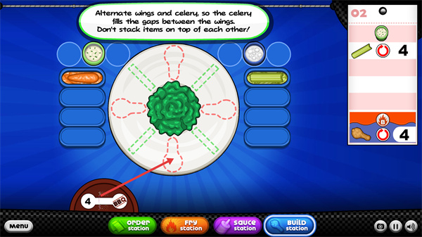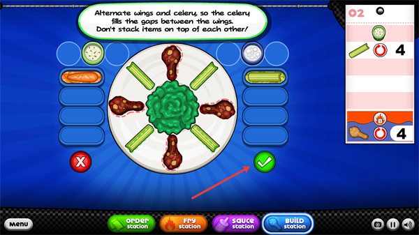 1、在“BUILDstation”环节,按照“鸡翅和芹菜交替摆放”的规则摆盘。