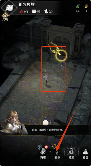 2、在诅咒废墟中,遇到阻挡道路的门时,可查看【装备】界面,准备好应对后续挑战的装备。