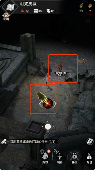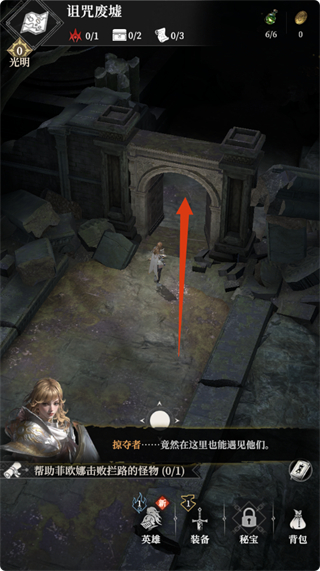 1、跟随菲欧娜的提示,前往预言中的审判官休眠之地,开启在诅咒废墟的冒险之旅。