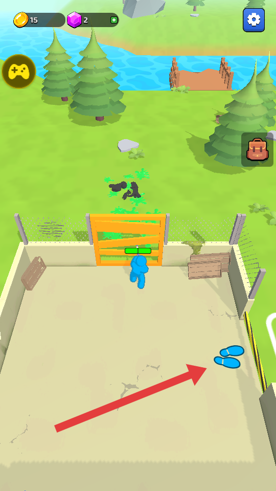 3、将敌人全部消灭后,移动至箭头所指位置,准备升级武器。