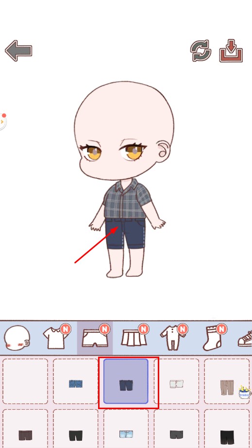4、再选深色短裤,为角色搭配下装,完善整体穿搭效果。