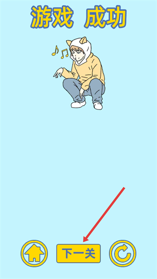 4、关卡成功后,点击红色箭头指向的【下一关】按钮,继续挑战后续关卡。