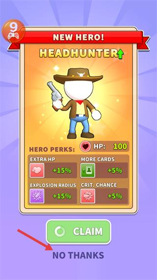 4、解锁新英雄后,可选择领取或跳过,继续游戏进程。