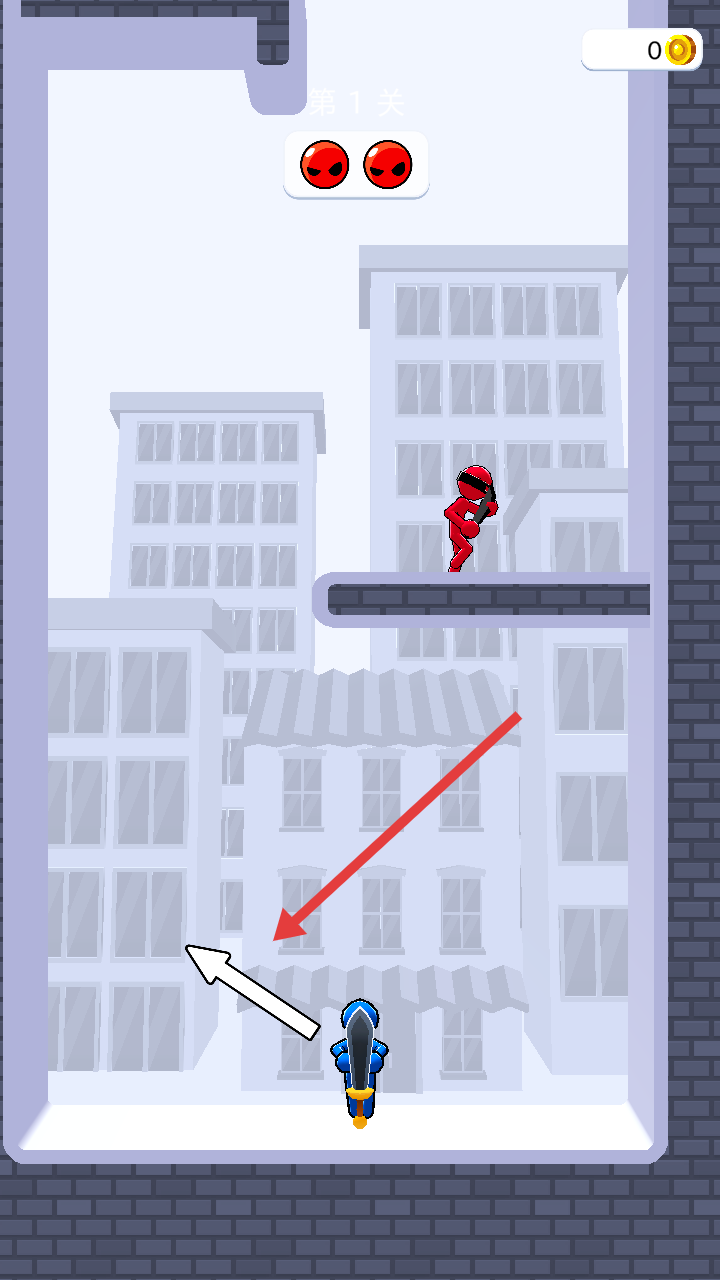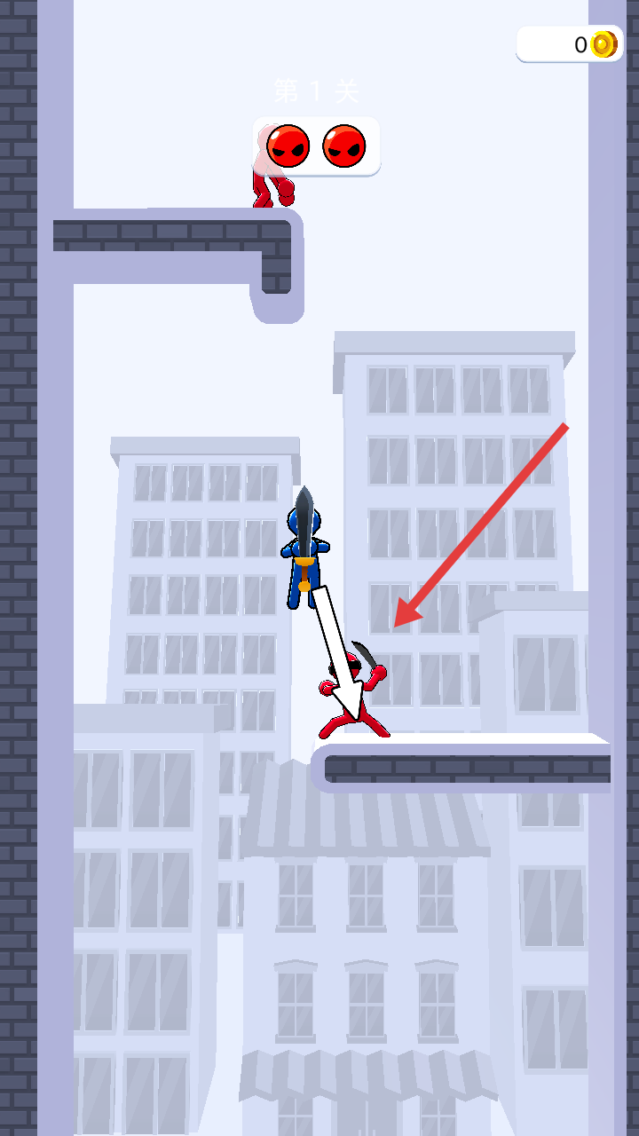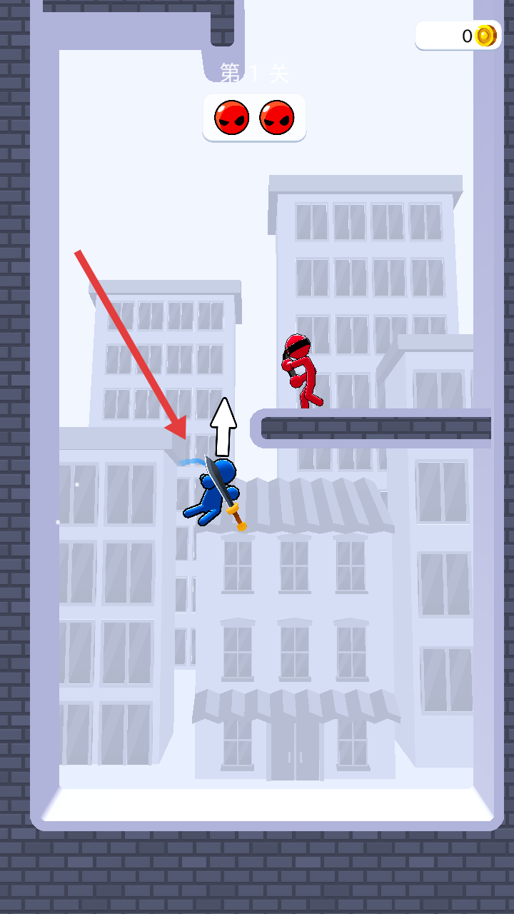 1、操控蓝色角色在城市建筑场景的关卡中移动,开始战斗挑战。