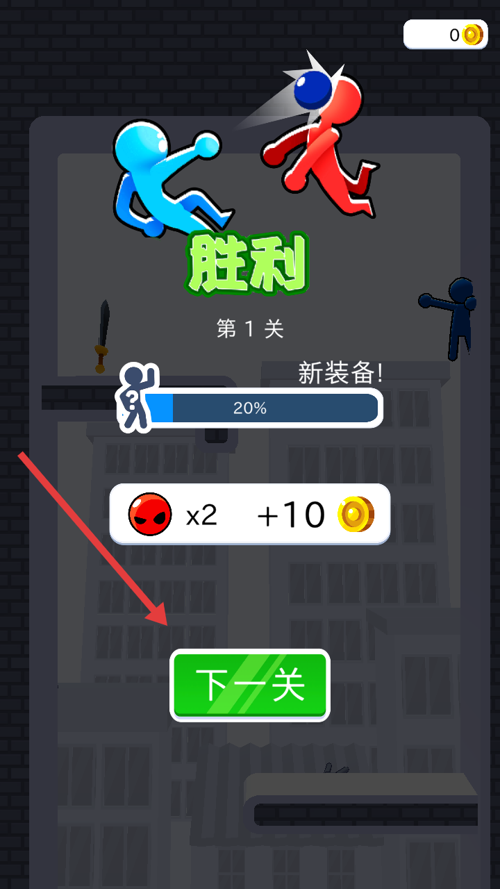 4、关卡胜利后,点击下一关按钮进入下一关,继续挑战更多城市建筑场景的战斗关卡。