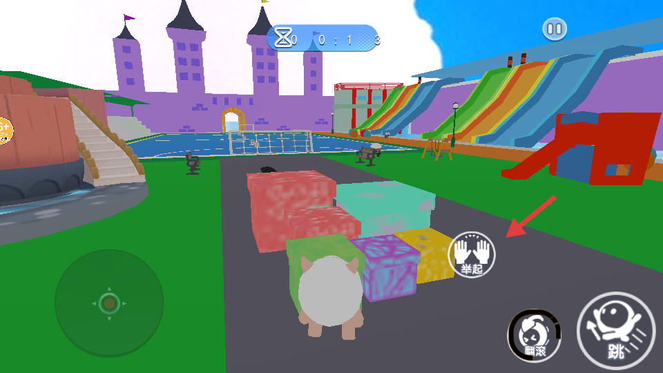 4、靠近彩色方块时,点击【举起】按钮,与方块互动完成关卡任务。
