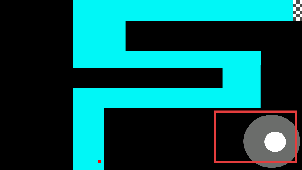 2、操控红色小点在迷宫中移动,注意迷宫的路径布局。