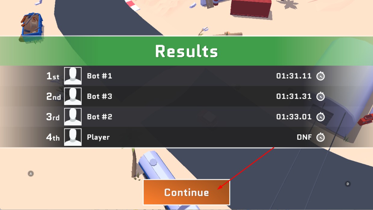 4、比赛结束后,点击【Continue】,可继续挑战下一场比赛,争取更好排名。