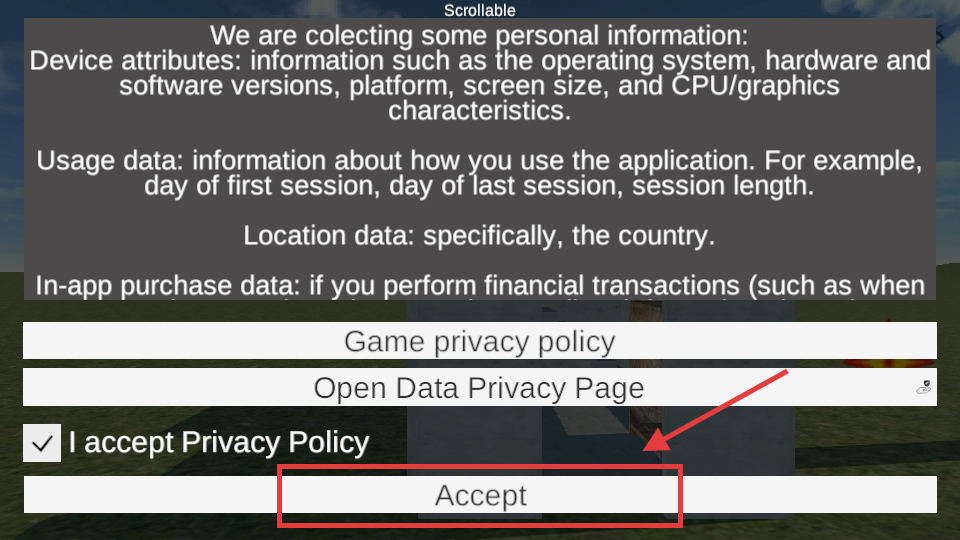 1、勾选【I-accept-Privacy-Policy】,点击【Accept】按钮,完成隐私协议确认即可进入游戏开始体验爆破。