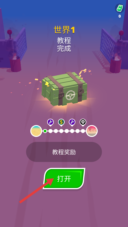 4、点击【打开】,领取教程奖励,推进游戏进度。