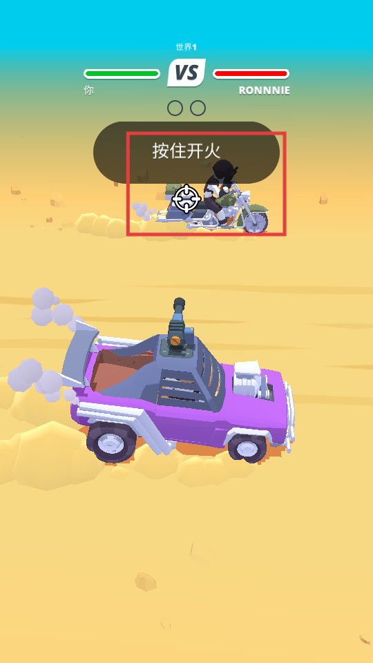 2、按住开火,攻击敌人,在对战中取得优势,推进游戏进程。