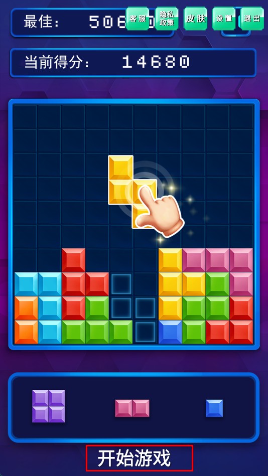 1、点击【开始游戏】,进入方块拼接消除游戏,开启挑战。