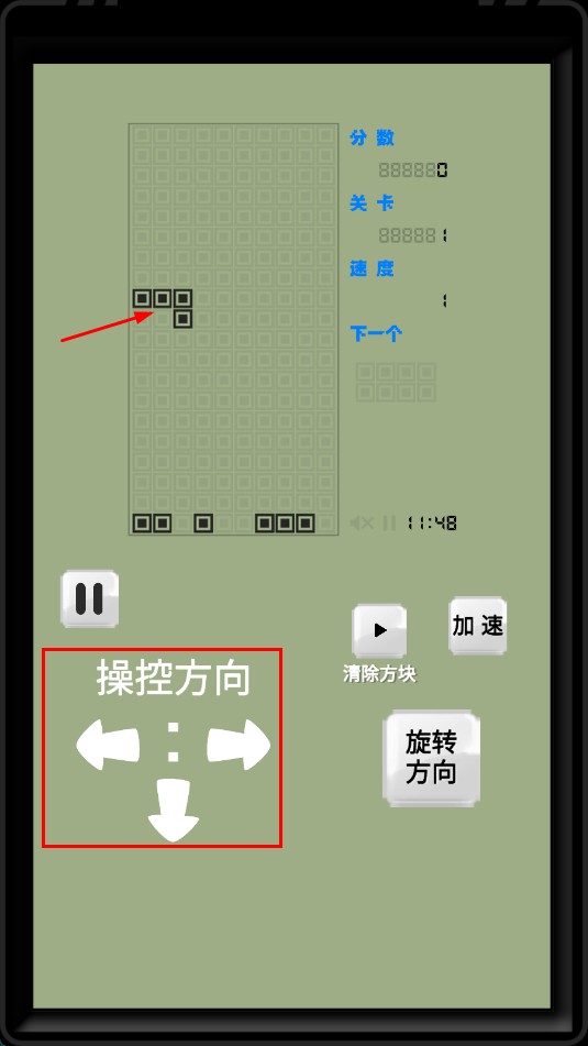 3、通过下方操控方向键,控制方块移动方向,调整方块位置,进行拼接。