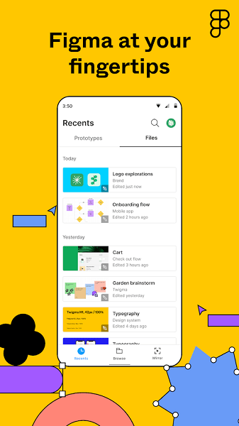 figma设计移动应用程序是设计工作以及移动文件浏览和共享的集中场所。查看和共享文件和原型、随时随地与任何人共享。