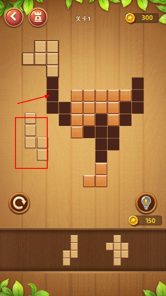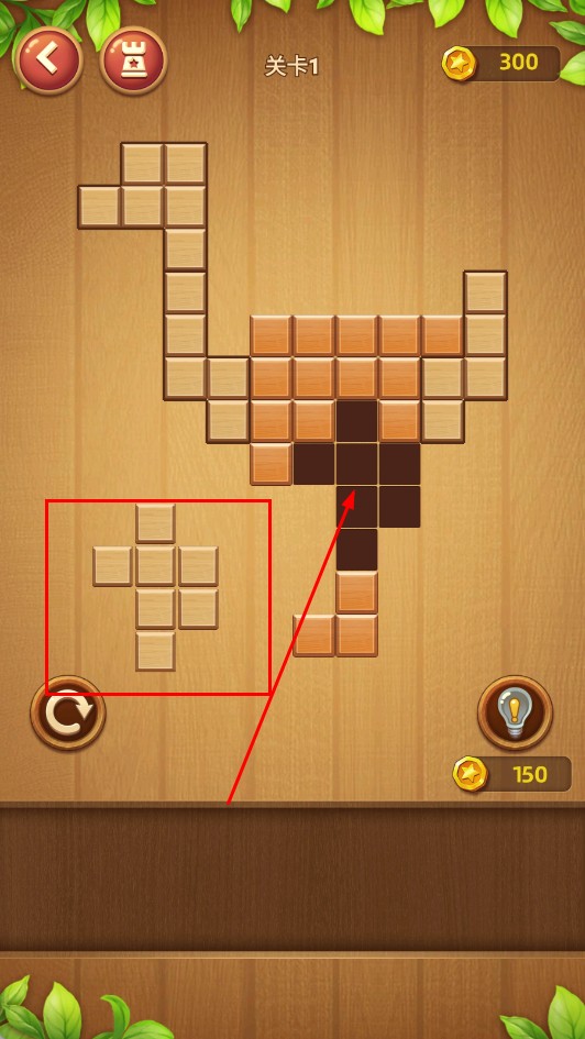 3、对不同形状木块,精准拖至动物轮廓的相应空位,完善拼图细节。