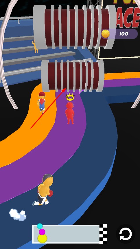 2、在赛道上,操控角色避开旋转的滚筒类障碍物,同时可尝试超越其他选手。