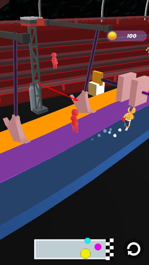 4、面对类似机械爪的障碍物,要及时调整角色位置,避免被其阻碍或淘汰,在安全时通过。