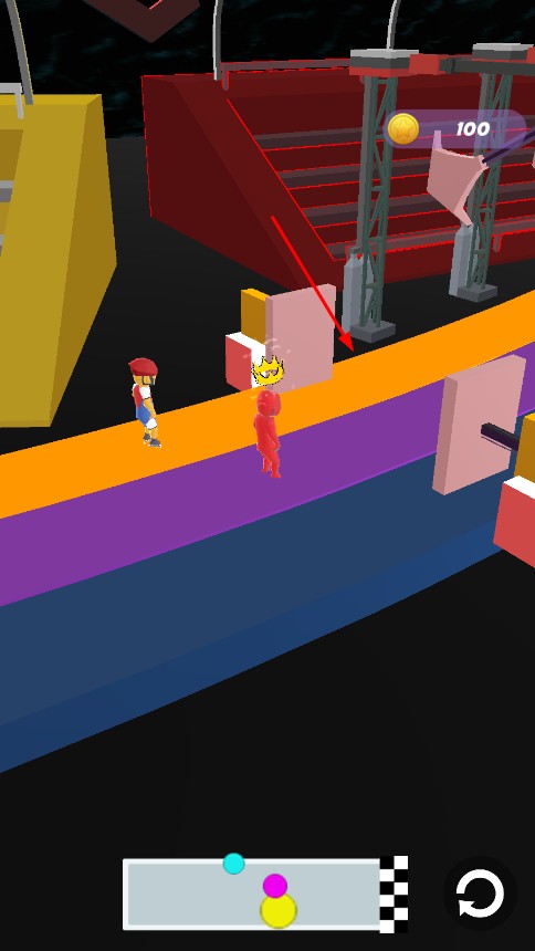 3、前行时,注意躲避侧方移动的块状障碍物避免被夹住,保持角色在赛道的安全。