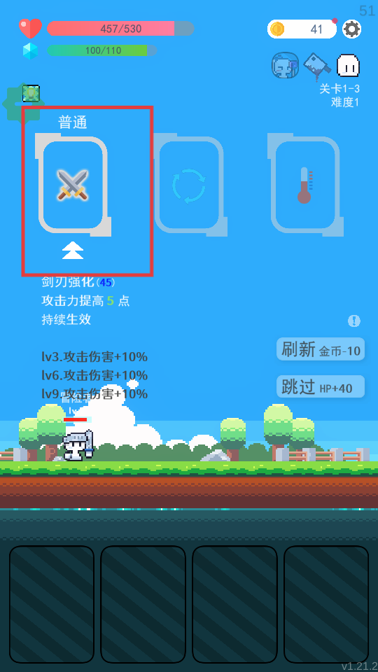 4、选择【剑刃强化】,提升攻击力5点,持续生效,增强战斗能力,更好应对敌人。