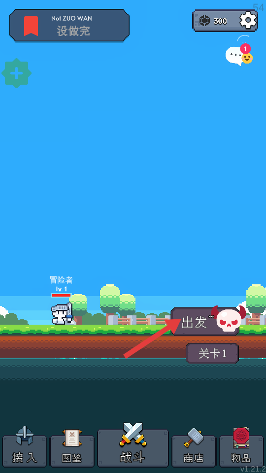 1、点击【出发】,开启冒险,进入关卡,开始游戏的冒险旅程。