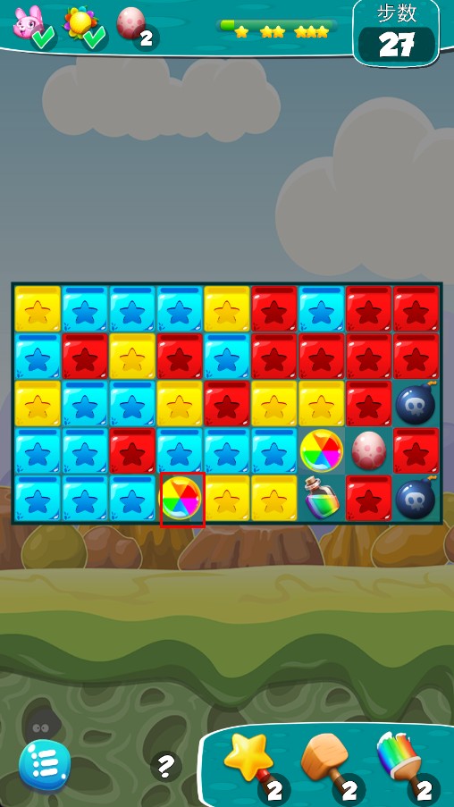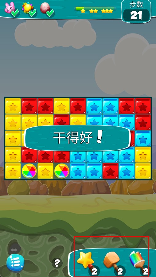 3、遇到困难可继续用下方星星、木槌等道具助力通关。