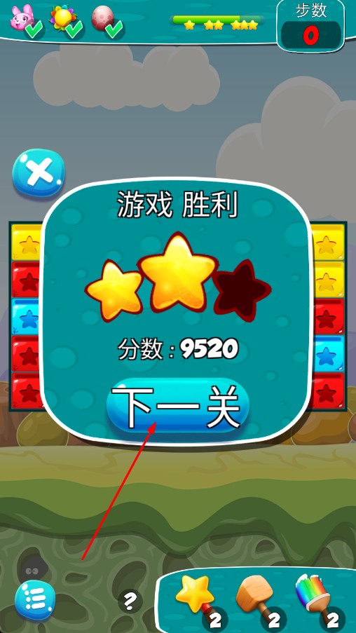 4、通关后,点击“下一关”,挑战新关卡,积累更高分数与星级评价。