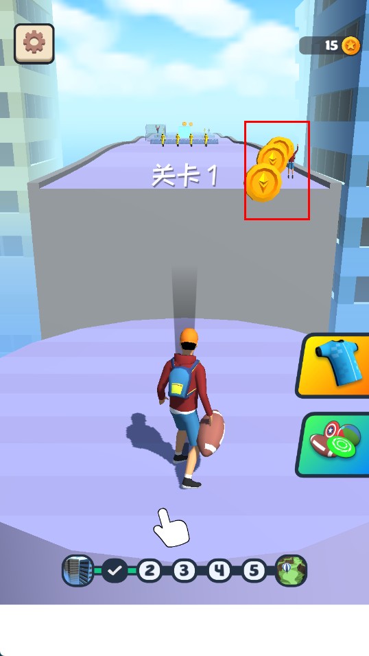 1、在关卡场景,留意并收集金色硬币,积累资源。