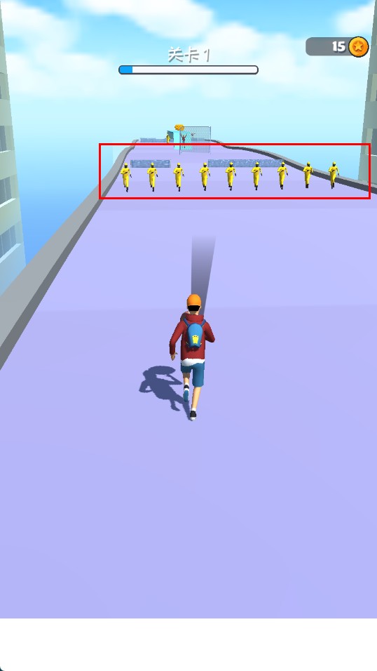 2、前行时,会遇到一排黄色小人阻挡,需灵活应对躲避,继续前进。