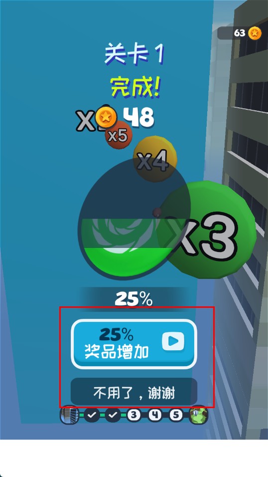 4、关卡完成后,点击【不用了,谢谢】按钮,结束当前流程进入下一关挑战。