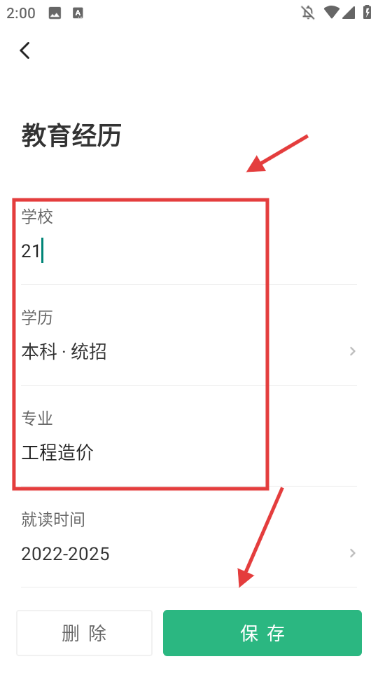 4、修改学校、学历、专业、就读时间等信息后,点击【保存】,完成修改操作。