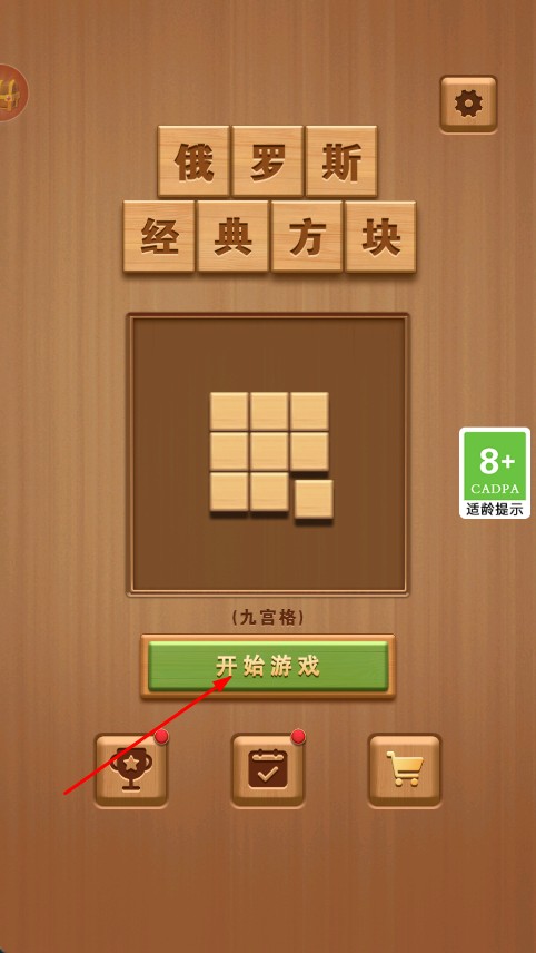 1、点击【开始游戏】,进入【俄罗斯经典方块】九宫格模式,开启方块拼接挑战。