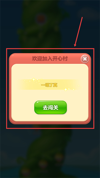 1、进入【开心村】后点击【去闯关】按钮开启游戏关卡挑战这是进入游戏的第一步操作。