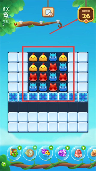 2、在【第6关】界面查看目标为消除【40】个指定元素选择可用道具后消耗【5】个道具点击开始。