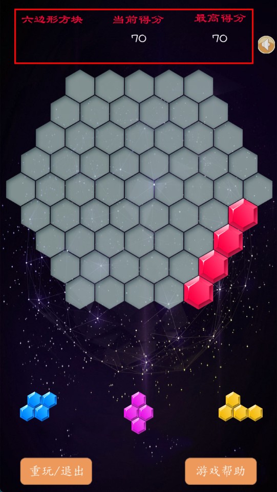 1、基础规则:随意点击3个预备方块投放至86格的蜂窝棋盘,仅需4个相邻相同方块即可消除得分,掌握28种消除排列方式是获取高分的关键。
