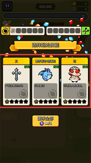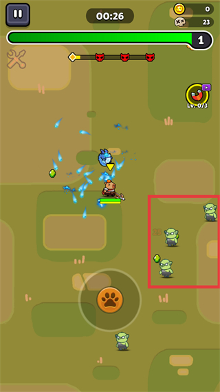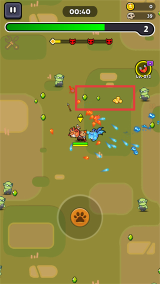 4、消灭怪物后收集红色框内的金币等资源,用于升级技能或解锁新能力,持续生存推进游戏。