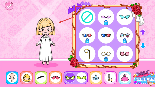 2、切换到配饰栏,挑选合适的眼镜,为角色戴上,增添时尚感。