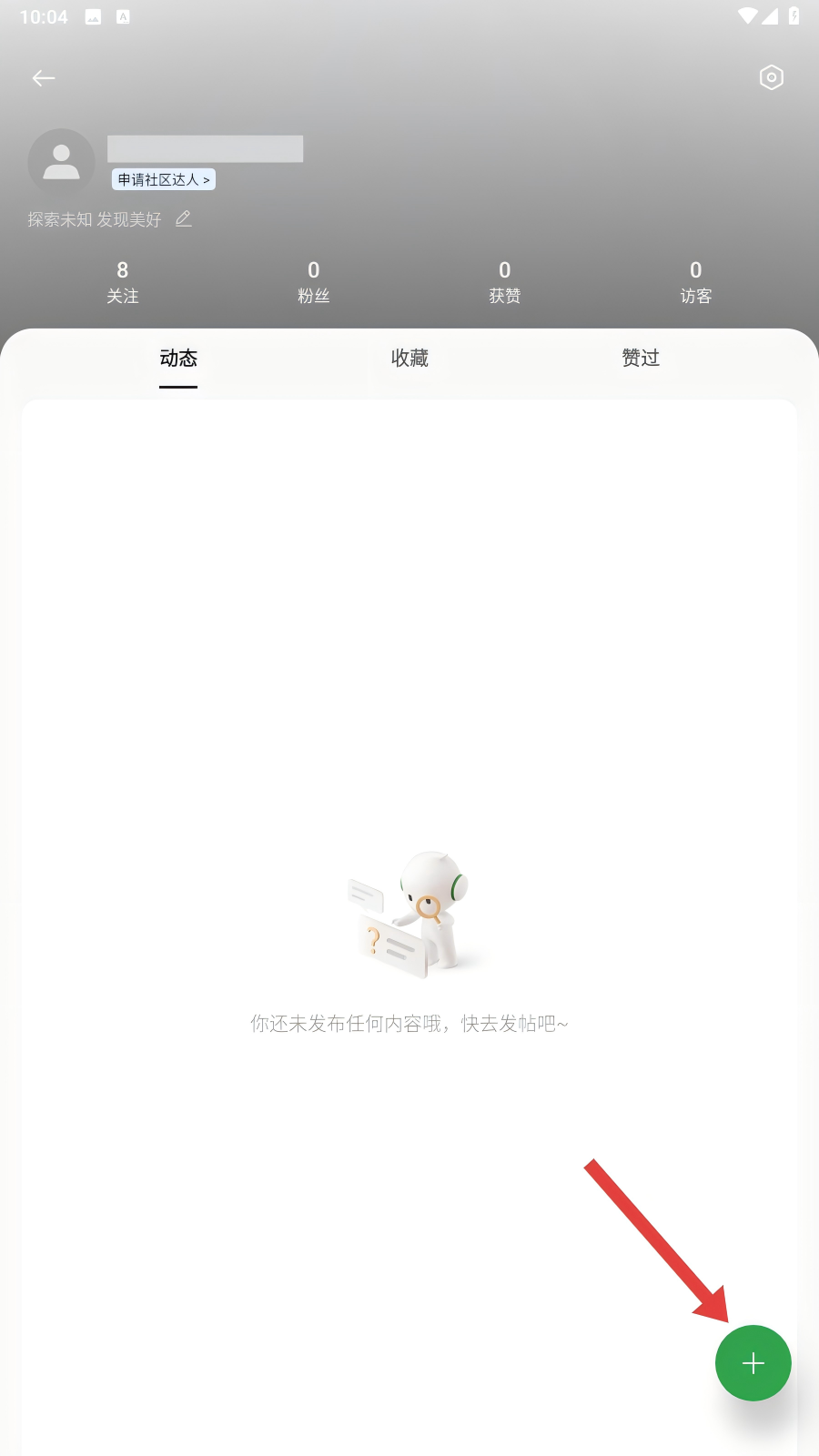 2、在个人页面里,我们点击右下角的绿色【+】按钮,就可以进入发布帖子的页面,准备编辑内容咯。