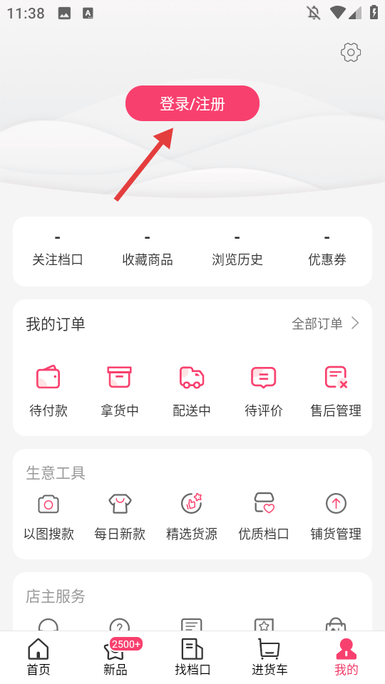 2、在“我的”页面,点击【登录/注册】,进入登录界面。