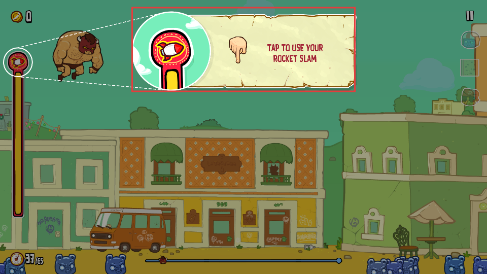 1、在飞行过程中,点击使用【RocketSlam】技能,提升飞行速度和冲击力,增加飞行距离。