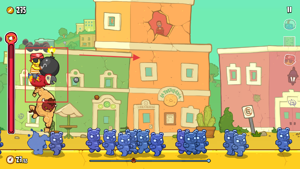 2、利用道具如炸弹等,摧毁沿途的软糖建筑和敌人,收集金币,积累资源以提升角色能力。