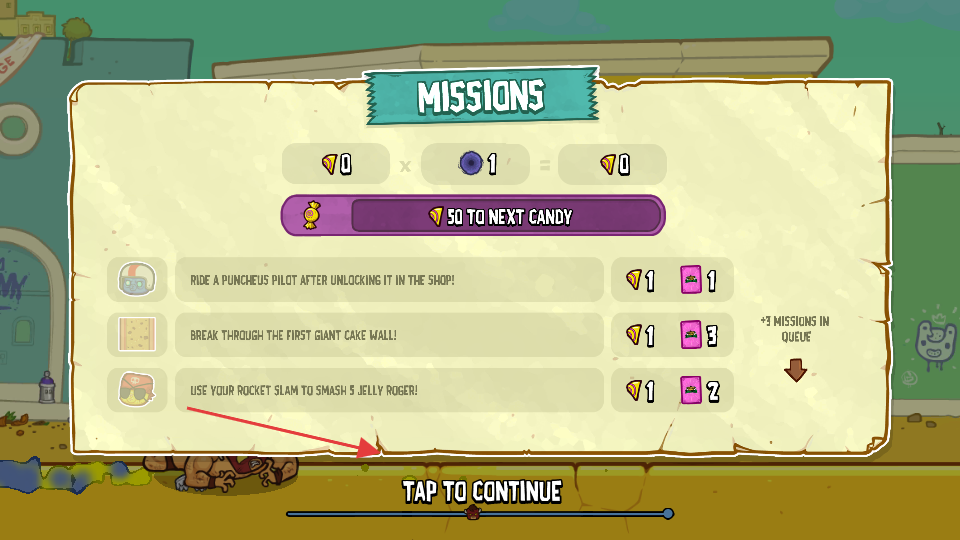 3、完成任务后,点击【TAPTOCONTINUE】,查看任务奖励。