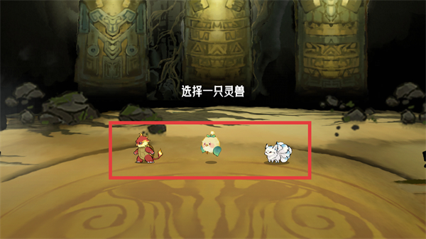 2、进入游戏后,在【选择一只灵兽】界面,从三只初始灵兽中选定其一,完成开局的灵兽选择步骤,开启后续玩法。