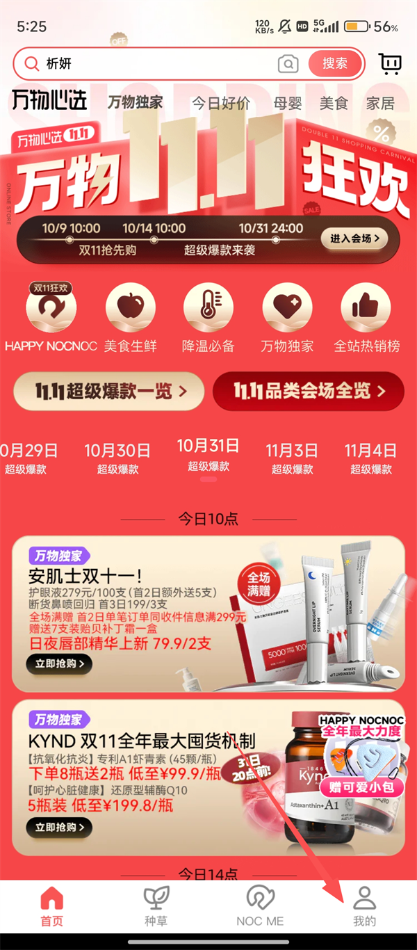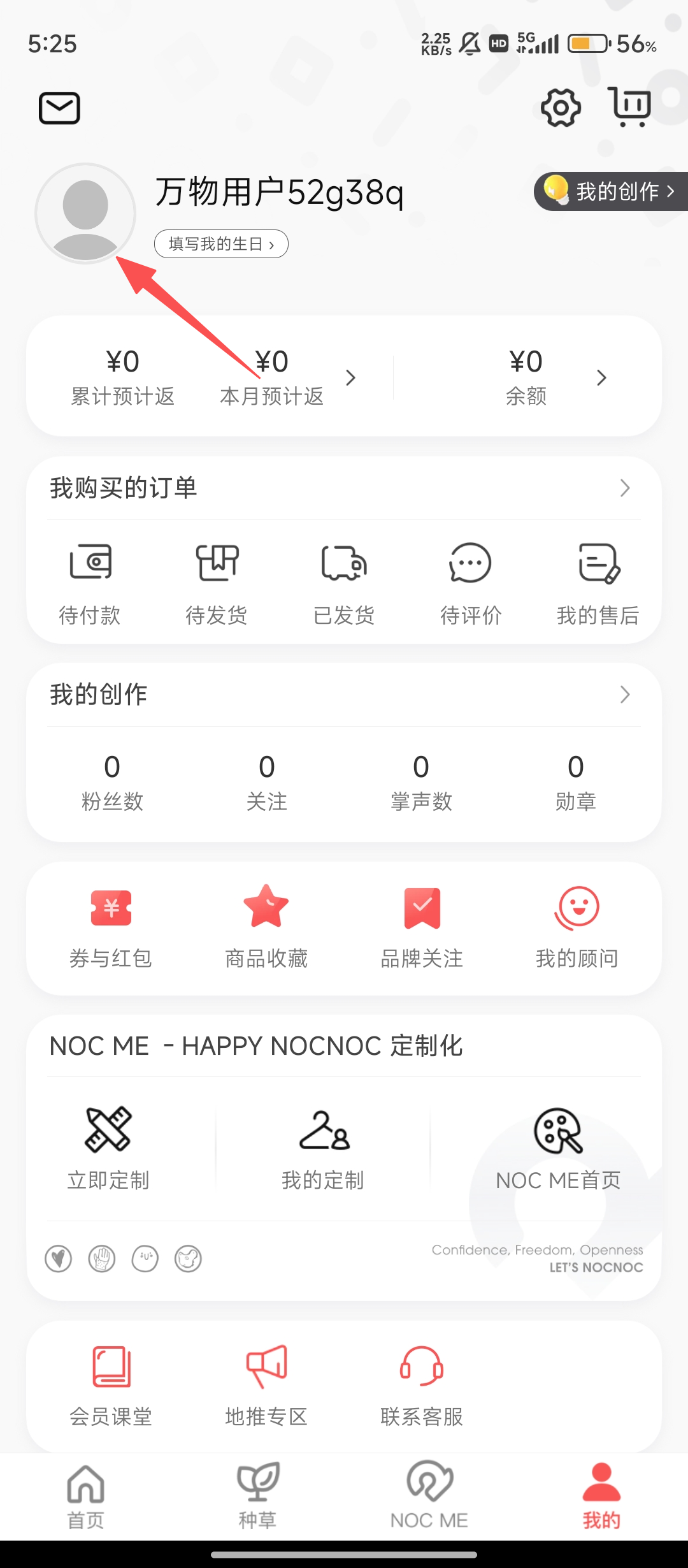 1、打开万物心选,点击底部【我的】,进入个人页面,开启修改昵称的操作流程哦。