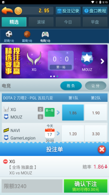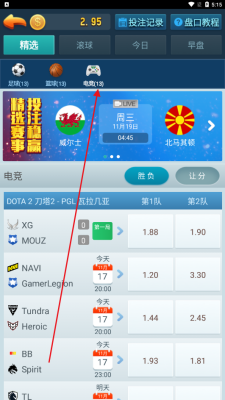 3、选择电竞这个板块,找到想要投注的游戏和对应的比赛场次;